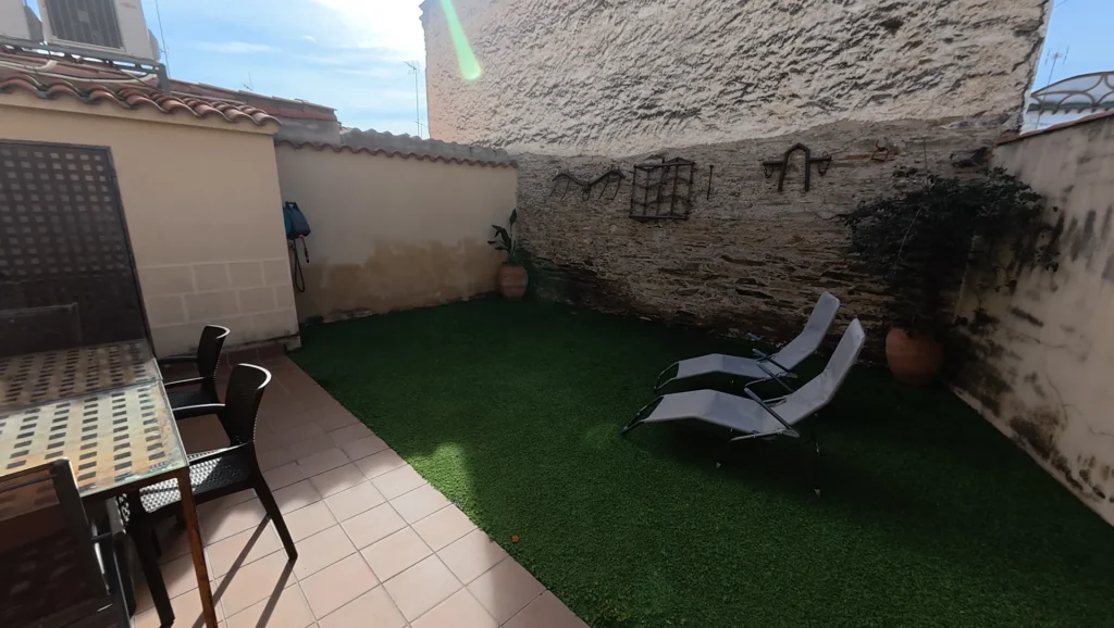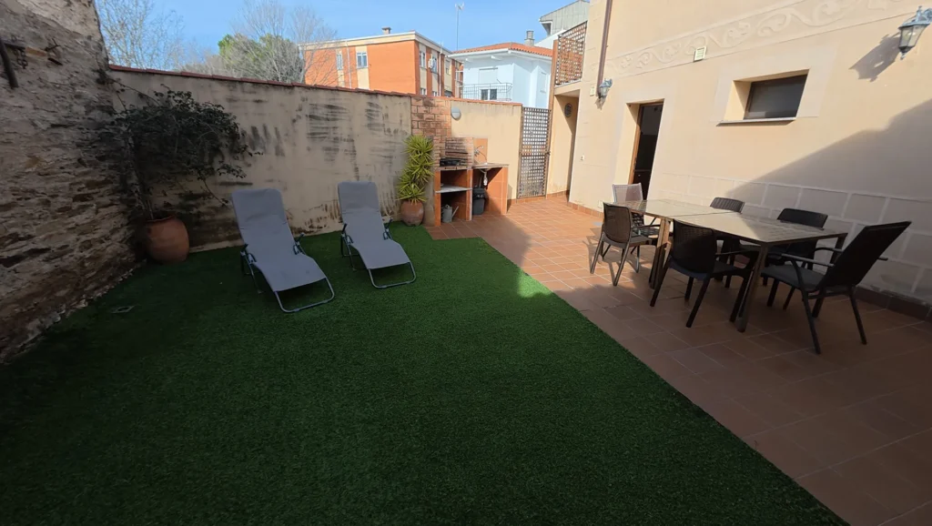 Dispone de una zona de jardín, barbacoa y una estancia habilitada como lavandería.